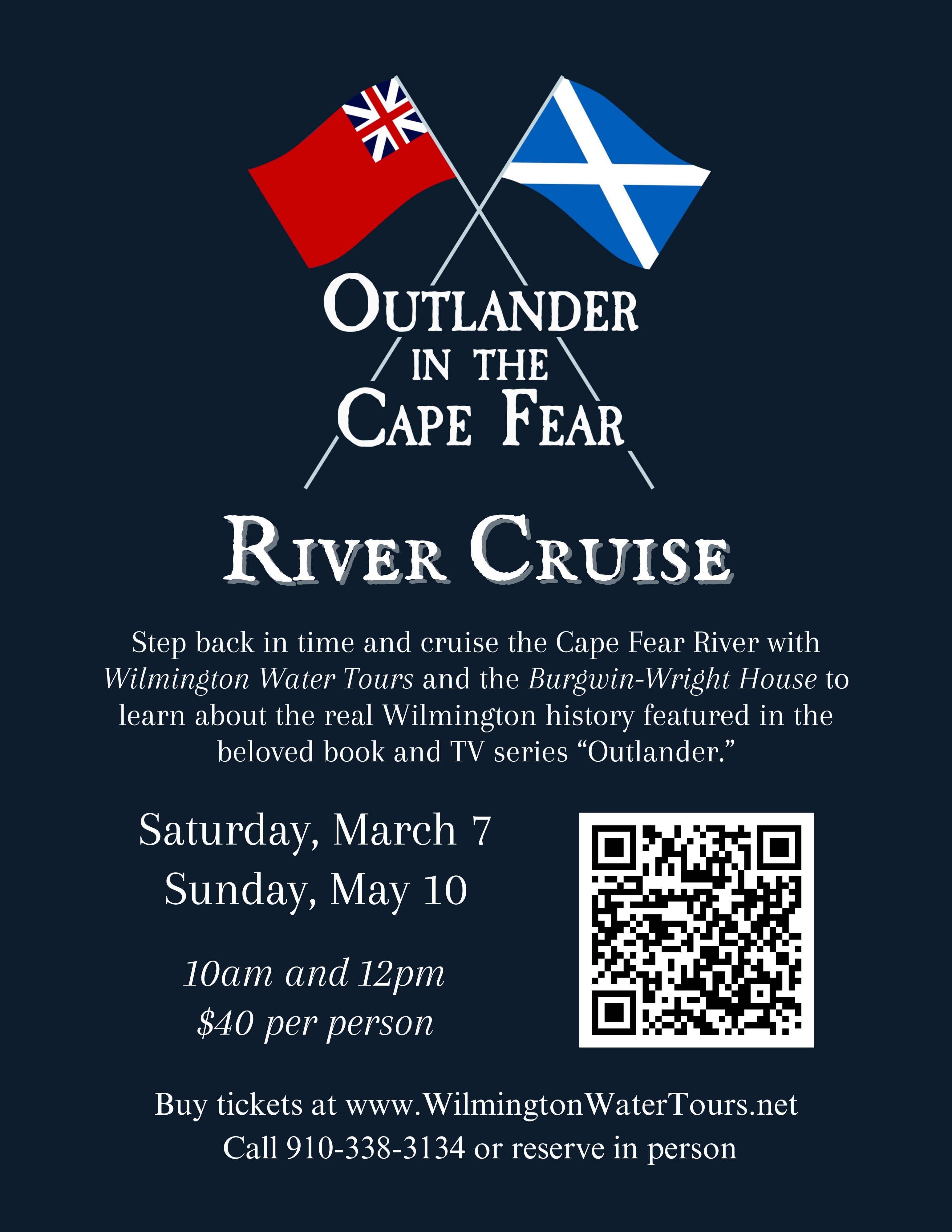 The thousands of real Scottish Highlanders who arrived in the Cape Fear region during the Colonial period would have first become acquainted with the Cape Fear River -- the only river in North Carolina with direct access to the ocean. It means there's no better place to learn about the real history discussed on the "Outlander in the Cape Fear" podcast than on our "Outlander"-themed river cruises with Wilmington Water Tours. Check out the future cruise dates below and purchase tickets at here.